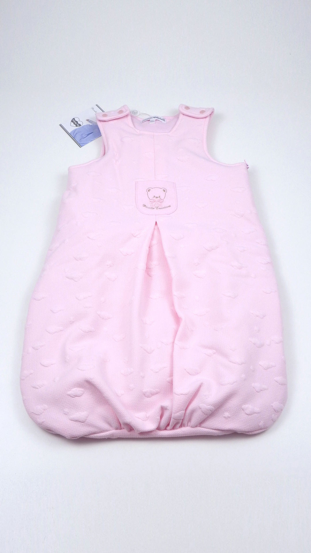 Sacco nanna neonato Nazareno Gabrielli aperto sulle spalle con bottoni e di lato con lampo realizzato in piquet matelasse imbottito con ovatta termica foderato in jersey di Caldo Cotone 100%, adatto per bambini fino a 9 Mesi